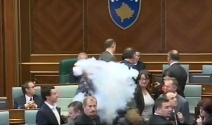 Prošlog četvrtka suzavavc u parlamentu je tokom zasedanja bacio osnivač radikalnog opozicionog pokreta Samoopredeljenje Aljbina Kurtija, inače, najžešći protivnici briselskih sporazuma, formiranja Zajednice srpskih opština, kao i sporazuma o demarkaciji sa Crnom Gorom. Tenzije u Prištini rastu, posebno nakon privođenja Kurtija u ponedeljak uveče i demonstracija njegovih pristalica tokom kojih je povređeno 15 osoba, od kojih je 14 pripadnika policije.