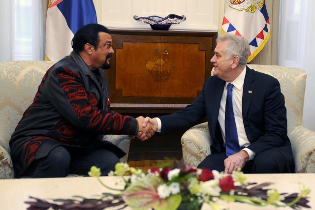 (FOTO I VIDEO) NASMEŠIO SE I NIKOLIĆ: Predsednik dočekao američkog akcionog heroja Stivena Sigala!