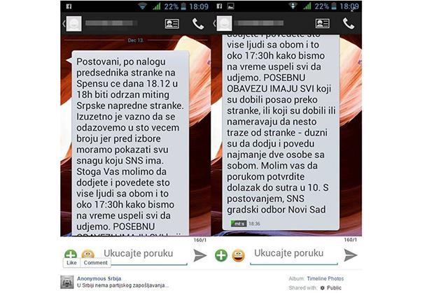 Ovu poruku je šerovala i grupa Anonymous Srbija, ali za sada nema potvrde da li je ovaj SMS autentičan ili je plod nečije šale.