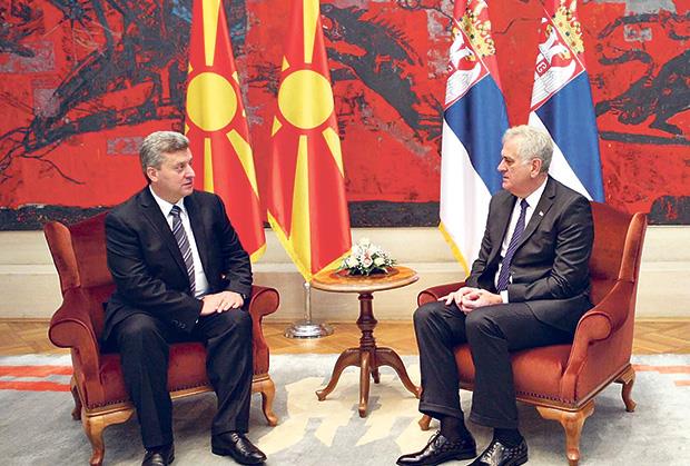 BEOGRAD - Predsednik Srbije Tomislav Nikolić pokačio se sa svojim makedonskim kolegom Ðorđem Ivanovim u Briselu, pred početak zajedničkog sastanka s predsednikom Evropskog saveta Donaldom Tuskom. Ivanov je prvi čačnuo Nikolića, kritikujući to što je na auto-putu kod Preševa tabla na kojoj piše „Bivša Jugoslovenska Republika Makedonija“.