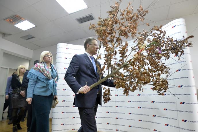 (FOTO) BADNJI DAN U SNS: Stefanović uneo badnjak, Vučić zbog obaveza nije bio tu