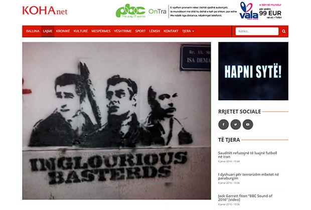 Grafit se pojavio u ulici "Isa Dima" u Peći. Na grafitu, ispod fotografija Veselija, Tačija i Mustafe piše "Inglourious Basterds" (Prokletnici).