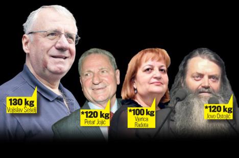 - Ne znam samo kako će uspeti da nas prenesu do Haga. Evo, ja imam 130 kila, Petar Jojić 120, Jovo Ostojić isto toliko, a naša Vjerica tu do 100, pa vi stračunajte koliko je to. To vam je gotovo 500 kilograma. Za to im će, bogami, biti potrebni kršni momci, a ne znam koliko će im i ti kršni pomoći - komentariše Šešelj u šaljivom tomu odluku Tribunala da troje radikala mora biti isporučeno u Hag.Sličnu poruku za Hag ima i Vjerica Radeta.