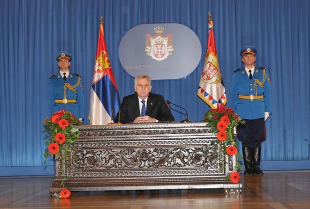 "Nemamo vladu koja bi mogla da odluči da taj sporazum bude potpisan. To će morati da sačeka konstituisanje Skupštine Srbije i formiranje nove Vlade, koja će imati priliku da se izjasni o sporazumu", rekao je Nikolić novinarima u Predsedništvu.