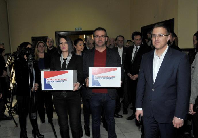 BEOGRAD - Srpska napredna stranka i njeni koalicioni partneri predali su danas Republičkoj izbornoj komisiji izbornu listu "Aleksandar Vučić - Srbija pobeđuje"“.