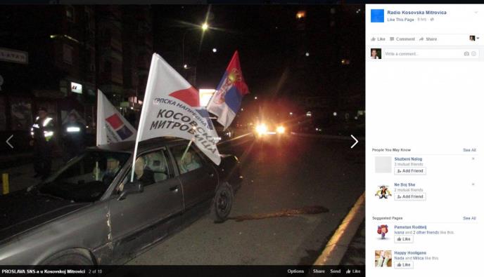 Pristalice i simpatizeri Srpske napredne stranke u nedelju uveče su u Kosovskoj Mitrovici slavili ubedljiv izborni rezultat koji je ta stranka ostvarila na parlamentarnim izborima.