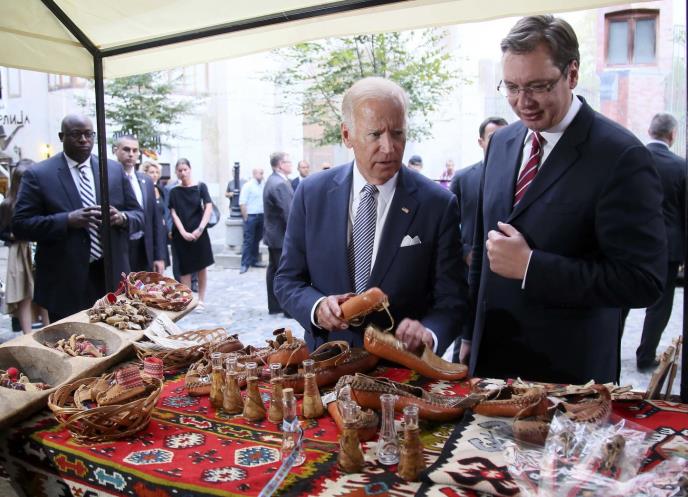 Dvojica državnika šetali su ovom boemskom ulicom prestonice i prošli pored tezgi na kojima se prodaju srpski suveniri i razne rukotvorine. Bajden je tom pilikom poželeo da kupi par opanaka.
