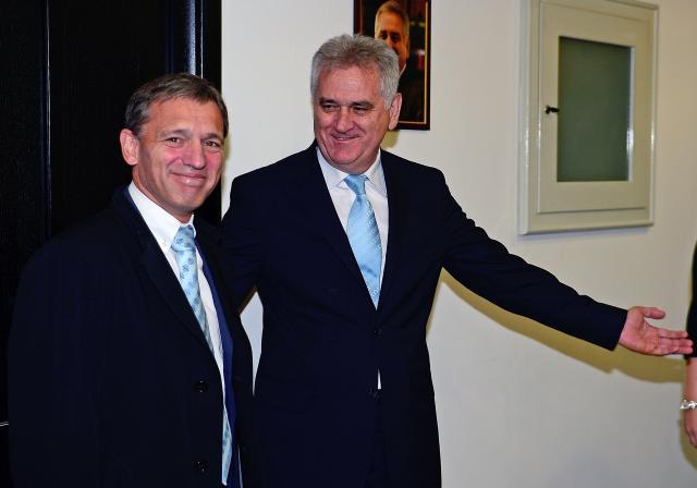 Osvrćući se na činjenicu da i dalje koristi prostorije stranke dok ne pređe u zgradu na Andrićevom vencu, Nikolić je novinarima u šali rekao "da još uvek uzuripira prostorije SNS za sastanke, gde se danas pored Dežera odvojeno sastao i sa ambasadorima Japana i Velike Britanije".