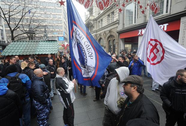 Na skupu je bio i Nemanja Ristić koji je sredinom januara bio uhapšen u Srbiji po poternici Crne Gore zbog sumnje da je učestvovao u pokušaju terorističkog napada na dan izbora u Crnoj Gori oktobra 2016. godine.Ristića je posle hapšenja Viši sud u Beogradu uslovno pustio na slobodu - uz ograničenje da ne napušta Beograd i da se jednom nedeljno javlja policiji.