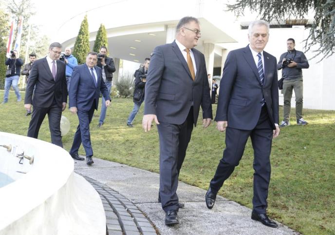 BEOGRAD - Sastanak predsednika Srbije Tomislava Nikolića i premijera Aleksandra Vučić sa predsednikom Republike Srpske Miloradom Dodikom i predsedavajućim Predsedništva BiH Mladenom Ivanićem počeo je danas u vili Mir u Beogradu.