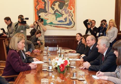 BEOGRAD - Visoka predstavnica EU za spoljnu i bezbednosnu politiku i potpredsednica Evropske komisije Federika Mogerini tokom višednevne posete zemljama Zapadnog Balkana boravi danas u Beogradu gde je razgovarala sa predsednikom Srbije Tomislavom Nikolićem.