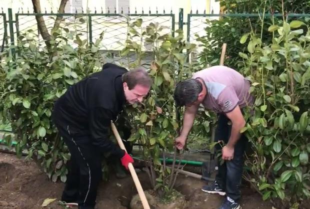 Karić je postavio i video snimak na svoju stranicu na Fejsbuk, na kome si vidi kako zajedno s radnicima postavlja nove sadnice.