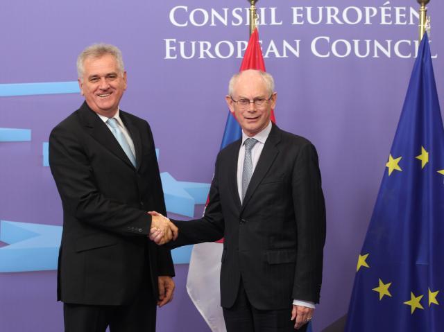 Predsednik Saveta EU Herman van Rompej saopštio je posle razgovora sa predsednikom Srbije potvrđena evropska perspektiva Srbije i poručeno da je normalizacija odnosa sa Kosovom ključni uslov za otvaranje pregovora o članstvu.