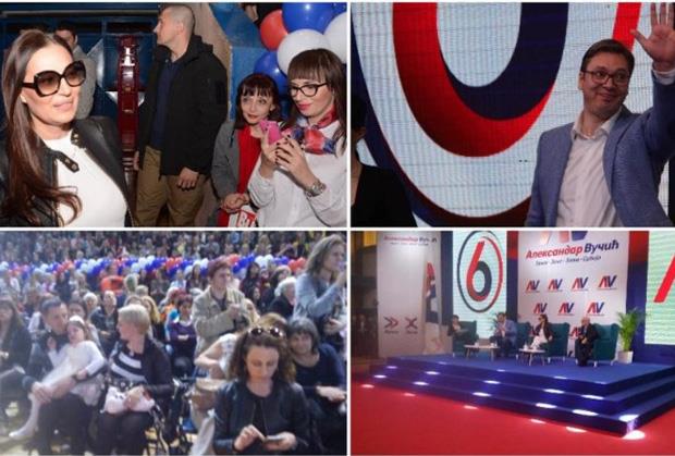 Vesela atmosfera, podrška Vučiću i dame s cvećem koje đuskaju - to je slika koja je ovog popodneva otišla u javnost iz SKC Šumice!