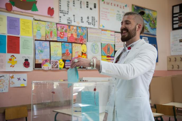 MLADENOVAC - Predsednički kandidat Luka Maksimović glasao je na biračkom mestu u OŠ Momčilo Živojinović u Mladenovcu.