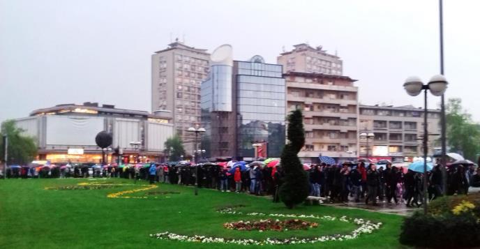 Oko 40 novopazarskih studenata i srednjokolaca okupilo se večeras oko 18 časova na gradskom trgu u Novom Pazaru preko puta gradske uprave na protestu zbog izbornih rezultata.