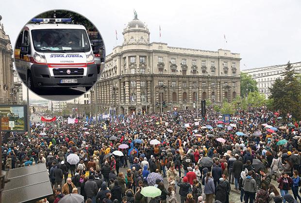 "Već nekoliko puta su kola hitne pomoći prolazile kroz masu i nijednom nisu bila ni usporena", navedeno je u saopštenju koje je agenciji Beta stiglo sa adrese protestprotivdiktature2107@gmail.com