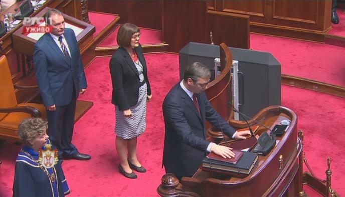 Zakletvu je položio na Ustavu Srbije i Miroslavljevom jevanđelju: "Zaklinjem se da ću sve svoje snage posvetiti očuvanju suverenosti i celine teritorije Republike Srbije, uključujući i Kosovo i Metohiji kao njen sastavni deo, kao i ostvarivanju ljudskih i manjinskih prava i sloboda, poštovanju i odbrani Ustava i zakona, očuvanju mira i blagostanja svih građana Republike Srbije i da ću savesno i odgovorno ispunjavati sve svoje dužnosti".