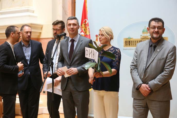 Poslanici Dveri su na konferecniji držali fikus, verovatno aludirajući na mandatarku Anu Brnabić za koju kažu da joj je predsednik Republike sastavio vladu, te da se ona ništa nije pitala u izboru ministara i da će verovatno i nastaviti tako da funkcioniše.