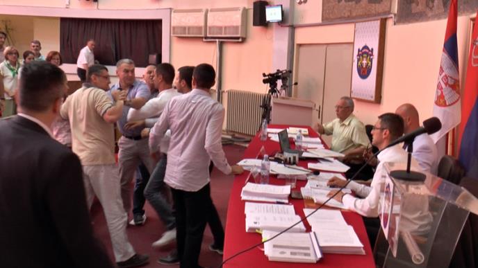 Trifunović je jednom broju odbornika Dveri izrekao opomene, a zatim je došlo do guranja među odbornicima i lomljenja mikrofona.