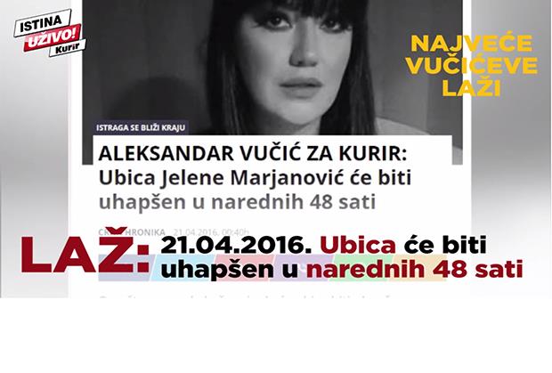 Aleksandar Vučić da lažno obećanje i kada mu to niko ne traži. Tako je tadašnji premijer neposredno pred izbore, 24. aprila prošle godine, iskoristio ubistvo pevačice Jelene Marjanović i najavio da će slučaj „biti rešen“, kao još jedan adut kod glasača.