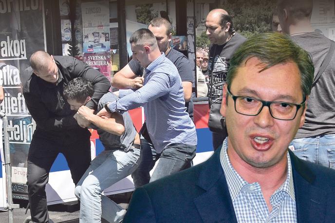 Postoje fotografije, svedočenja građana i novinara, međutim i dalje se ne zna ko su osobe koje su ih fizički udaljavale sa skupa tokom polaganja zakletve predsednika Srbije. Javnost je od medija saznala da je muškarac u svetloplavoj košulji Borko Aranitović. Novinari Krika navode da je on blizak grupi ljudi oko ubijenog vođe navijača Aleksandra Stankovića zvanog Sale Mutavi.