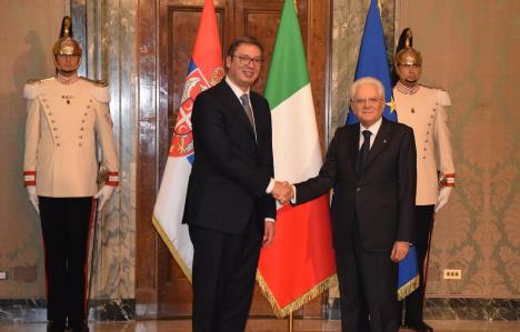 RIM - Predsednik Srbije Aleksandar Vučić, koji boravi u jednodnevnoj radnoj poseti Rimu, sastao se danas sa predsednikom Italije Serđom Matarelom.