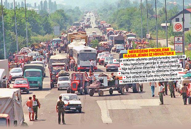 Ni posle više od dve decenije prognanim Srbima nisu isplaćene penzije iz Hrvatske, vraćeno poljoprivredno zemljište, obnovljene oštećene kuće, niti su dobili adekvatnu zamenu za stanove iz kojih su proterani i u koje više nikad neće moći da se vrate.