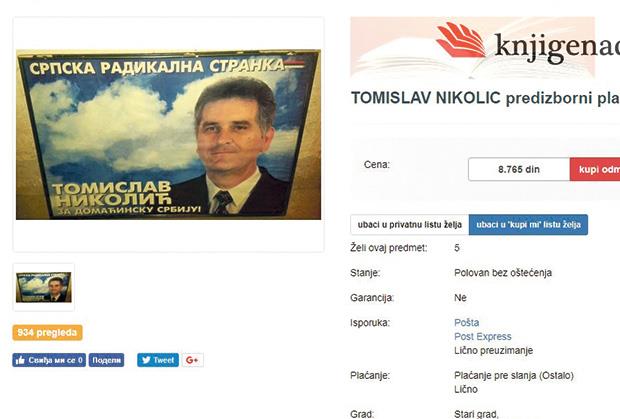 Da su Srbi dovitljivi, naročito kad ih udari besparica, pokazuje i to što je jedan građanin dao neobičan oglas na sajtu za trgovinu Kupindo - za poster bivšeg predsednika Tomislava Nikolića još iz devedesetih, iz vremena radikala, dimenzija 80x120, traži „tričavih“ 8.765 dinara.