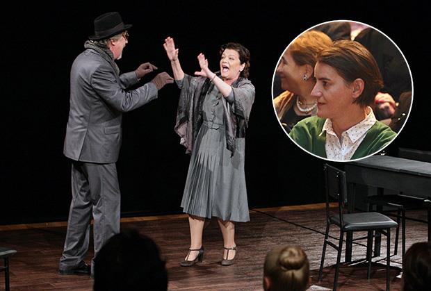 BEOGRAD - Premijerka Srbije Ana Brnabić predah od brojnih obaveza pronašla je sinoć u pozorištu u centru Zemuna na premijeri predstave "Žanka" koju je gledala u društvu devojke dr Milice Đurđić.