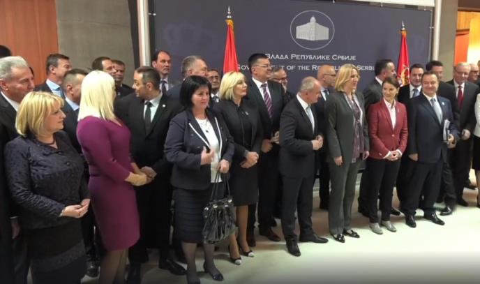 Na kraju obraćanja, napravljena je zajednička fotografija na kojoj su obe premijerke i svi ministri obeju vlada.