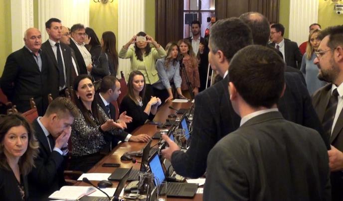 Kako je Obradović i dalje raspravljao sa Martinovićem, rekavši "ne možete da ponižavate opoziciju", poslanica Barišić je zapitala: "A, vi možete da bijete ovde?".