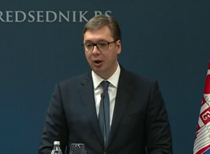 "Zamislite koliko je Janković popularan u Mionici... Ne mogu nikog živog da nađu tamo. Tvrde da mi imamo većinu u Preševu, a mi ćemo se boriti za prelazak cenzusa. Srba nema u Preševu. A sinoć su najavili kako kreće rušenje SNS u Kruševcu, a ti koje bi oni da ruše imaju podršku u Kruševcu između 90 i 98 odsto", istakao je predsednik Vučić, odgovarajući na novinarska pitanja o porukama Vuka Jeremića i Saše Jankovića.