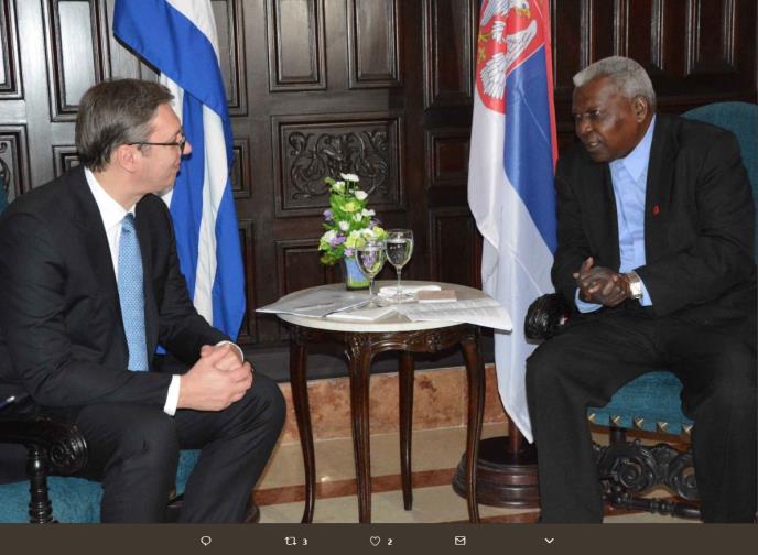 Predsednik Srbije Aleksandar Vučić sastao se danas popodne u Havani sa predsednikom Narodne skupštine Kube Estebanom Lasom Ernandesom.