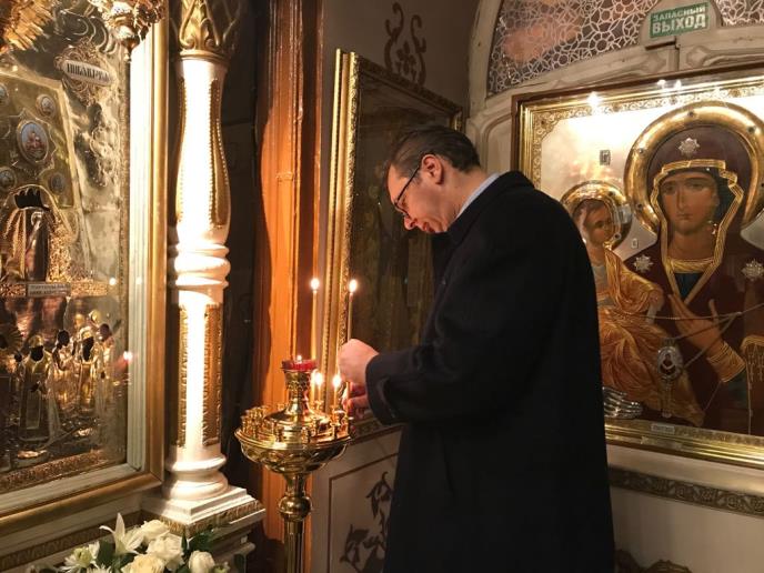 On je tom prilikom položio cveće u spomen sobi za 64 člana ansambla koji su poginuli u avionskoj nesreći 25. decembra 2016.