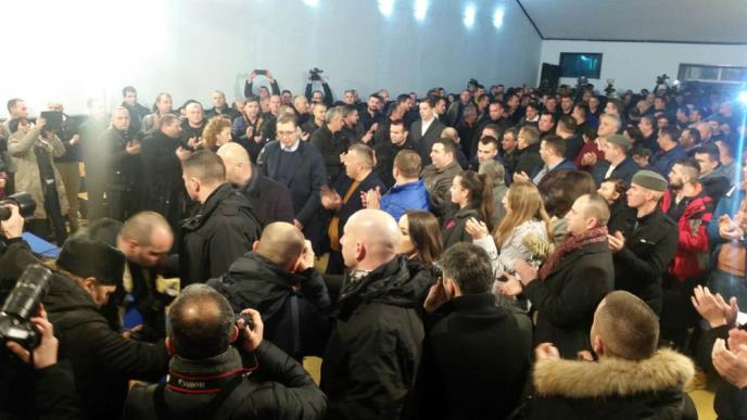 Vučić je dočekan aplauzom i povicima "Srbija, Srbija!" a mimo protokola obratio se ljudima koji su ga dočekali ispred sale.