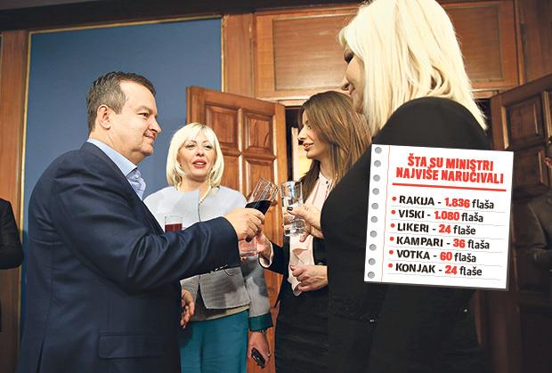 Kako bi u svakom momentu ministri i drugi državni funkcioneri, ali i njihovi gosti, mogli da okvase grlo, Uprava za zajedničke poslove republičkih organa naručila je pozamašnu količinu alkoholnog pića, i to u vrednosti od skoro šest miliona dinara!