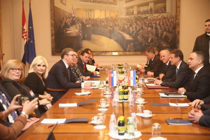 Nakon susreta sa predsednicom i premijerom Hrvatske, Aleksandar Vučić se sastao i sa predsednikom Sabora Gordanom Jandrokovićem. Uz predsednika, u srpskoj delegaciji su i ministarke Zorana Mihajlović i Jadranka Joksimović. Kao i u slučaju prethodnih razgovora i ovaj bi trebalo da prođe u znaku razvoja odnosa dve države.