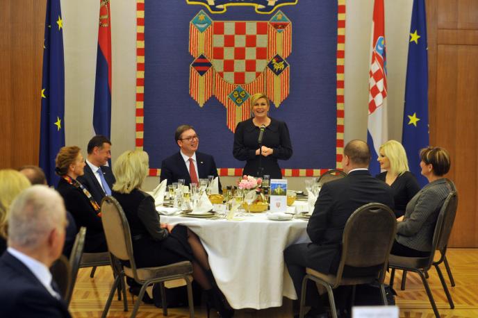 Predsednica Hrvatske Kolinda Grabar-Kitarović priredila je večeras u svojoj službenoj rezidenciji na Pantovčaku svečanu večeru za predsednika Srbije Aleksandra Vučića i delegaciju i iskoristila priliku da još jednom istakne značaj posete šefa srpske države.
