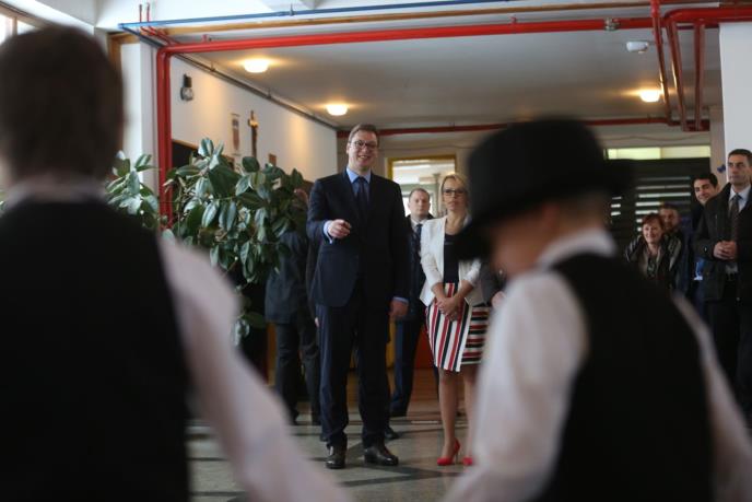 "Očekujem da ćemo u budućnosti moći neke stvari da promenimo", kratko je kazao Vučić pre nego što je ušao u lokalnu školu "Gvozd".