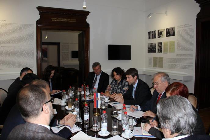 Na današnjem sastanku državnog sekretara Ministarstva spoljnih poslova Nemanje Stevanovića sa delegacijom Ministarstva inostranih poslova Albanije, na čelu sa Feritom Hodžom, izraženo je uverenje da će bilateralni odnosi nastaviti uzlazni trend, kao i da će dve države nastaviti još intenzivniju saradnju u oblasti evro-integracija.
