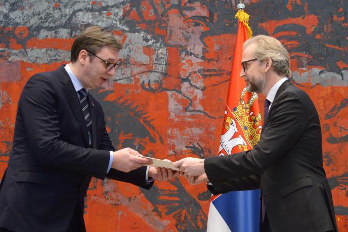 Predsednik Srbije Aleksandar Vučić primio je danas akreditivna pisma novoimenovanog ambasadora Austrije Nikolausa Luterotija koga je tom prilikom upoznao sa neodrživim stanjem dijaloga Beograda i Prištine.