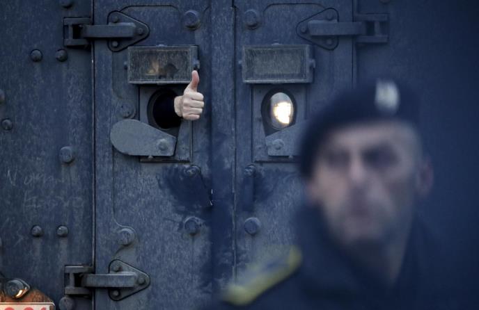 2. Da bi Đurić izveo ovakav manevar, morao je da sedi do otvora vozila. Na slici koju prenosi albanski portal IndeksOnline vidi se da Đurić sedi u sredini, okružen policajcima.