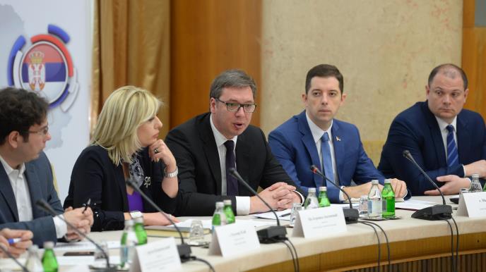 Tema sastanka je "Rešenje kosovskog pitanja - šansa ili pretnja evropskoj perspektivi Srbije", a predsednik Vučić je istakao da će Beograd nastaviti dijalog sa Prištinom uprkos lošoj atmosferi koja je stvorena brutalnim terorom i hapšenjem Marka Đurića.