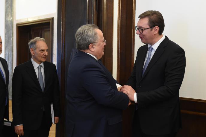 Predsednik Vučić sastao se danas u Beogradu sa ministrom spoljnih poslova Grčke, sa kojim je razgovarao o bilateralnoj saradnji, situaciji u regionu i evropskim integracijama Srbije.