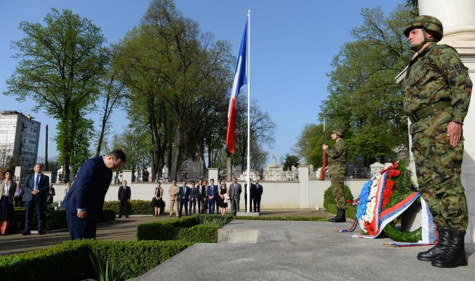 Ministar spoljnih poslova Ivica Dačić i ministar evropskih i spoljnih poslova Francuske Žan-Iv Le Drijan, položili su danas vence na Francuskom vojnom groblju, koje se nalazi u okviru Novog groblja, a na kojem je sahranjeno 375 francuskih vojnika stradalih tokom Prvog svetskog rata.