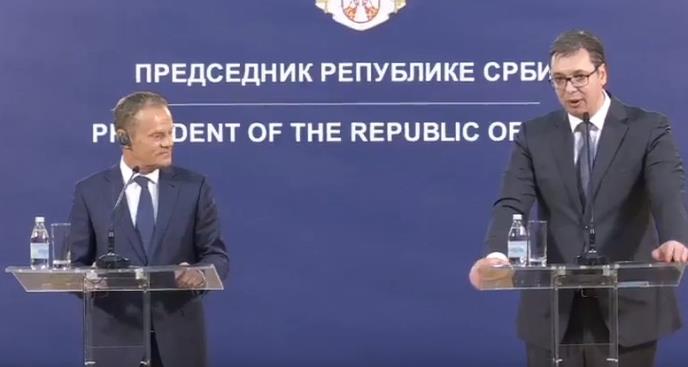 Tusk je u jednom trenutku rekao da za Vučića misli da je "nemoguće naći većeg Srbina od njega".