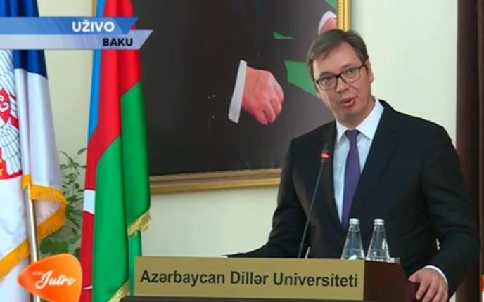 BAKU- U Bakuu je danas otvoren Centar za srpski jezik i kulturu na Azerbejdžanskom univerzitetu za jezike, a predsedniku Srbije Aleksandru Vučiću je uručen počasni doktorat.