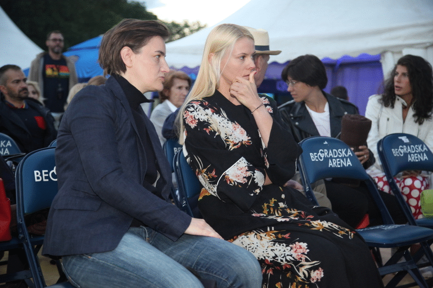 Protokol je ipak bio nešto stroži, te su se predsednica Vlade Srbije i lepa doktorka smestile u prvi red namenjen VIP zvanicama.