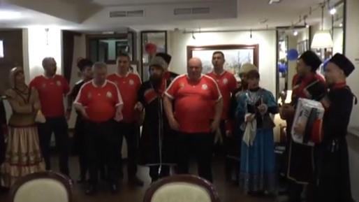 Kozaci su svoje srpske goste pozdravili tradicionalnom ruskom zdravicom i izveli više srpskih pesama među kojima i "Tamo daleko", kada je dirigovao Dragan Marković Palma, zatim "Mnogaja ljeta", kao i najpoznatije ruske pesme.